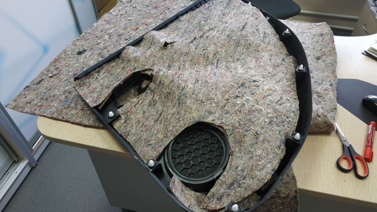 Третий важный участок — двери. Их шумоизоляция не только снижает шум с улицы, но и улучшает качество звучания аудиосистемы. Дверные карты обрабатывают в два слоя: сначала накладывают виброизоляцию, затем — шумопоглощающий материал.